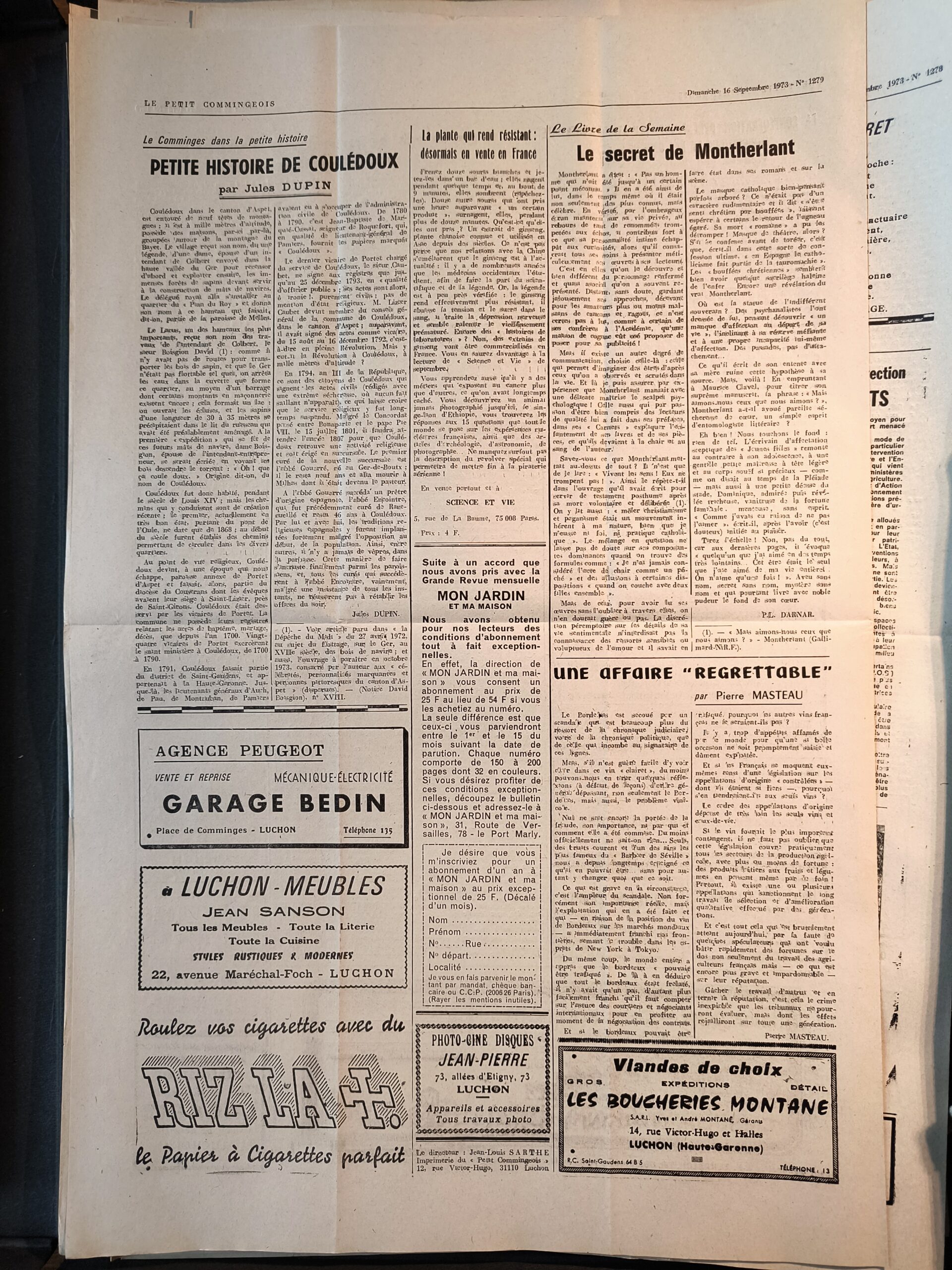 Le 16 septembre 1978, Le Petit Commingeois publiait en page 4 cette toute petite histoire de Coulédoux.